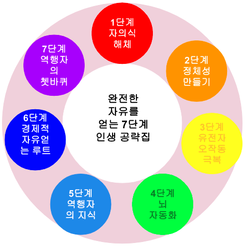 돈과 시간과 운명으로부터 완전한 자유를 얻는 7단계 인생 공략집을 소개하겠습니다.
