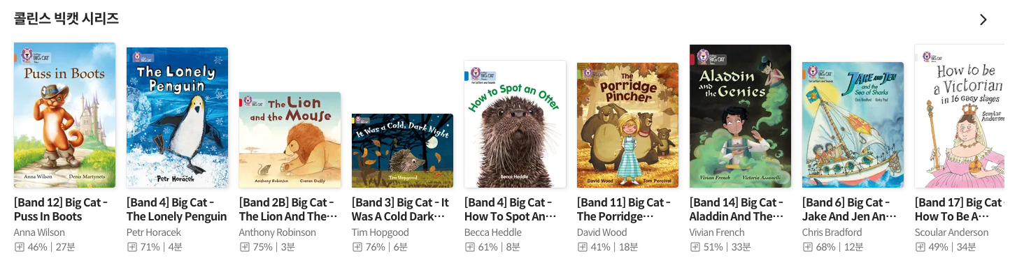 그리고 어린이 청소년 카테고리를 클릭한 다음 아래로 스크롤 다운하면 '콜린스 빅캣 시리즈' 가 있습니다.