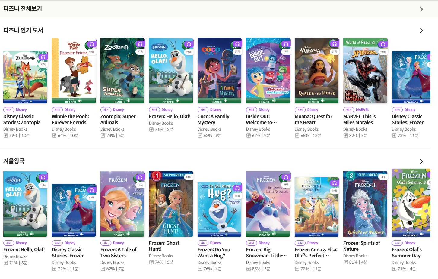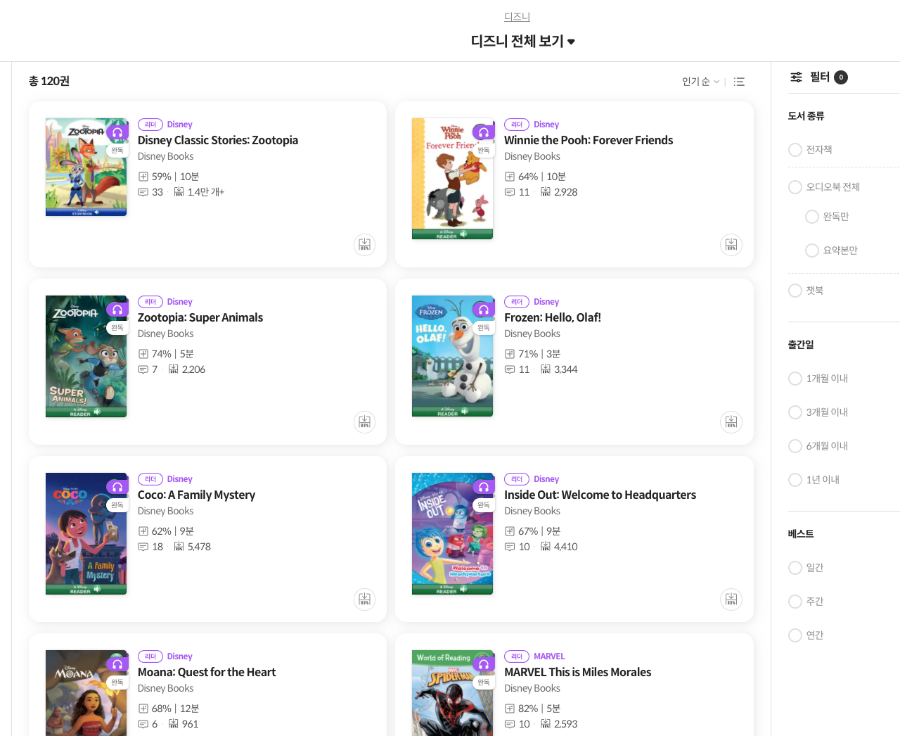 디즈니 카테고리를 클릭하면 영어 오디오북 120권을 함께 볼수 있습니다.