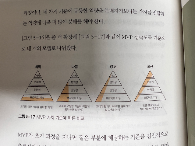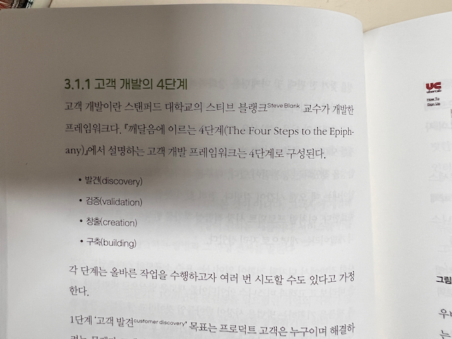 3장에서는 ‘고객 개발’ 개념과 과정을 다루는데, PM이 고객과 시장이 원하는 제품이나 서비스를 만들고 있는지 여부를 판단하는 방법과 그 과정(발견, 검증, 창출, 구축) 전체를 설명합니다.