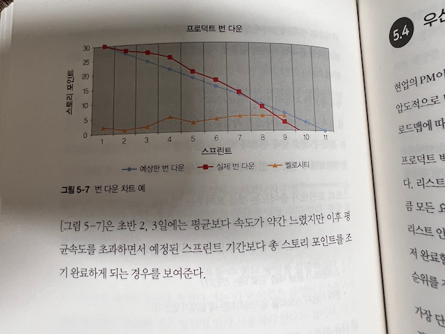 PM은 프로토타입을 만들고, 성공적으로 시장에 출시하기 위해서 계획 및 목표를 업무의 태스크 단위로 세분화해서 ‘프로덕트 백로그'로 관리를 하고, 진행 상황은 스프린트 내에 번다운 차트로 확인을 하고, 백로그 우선순위를 지정합니다.