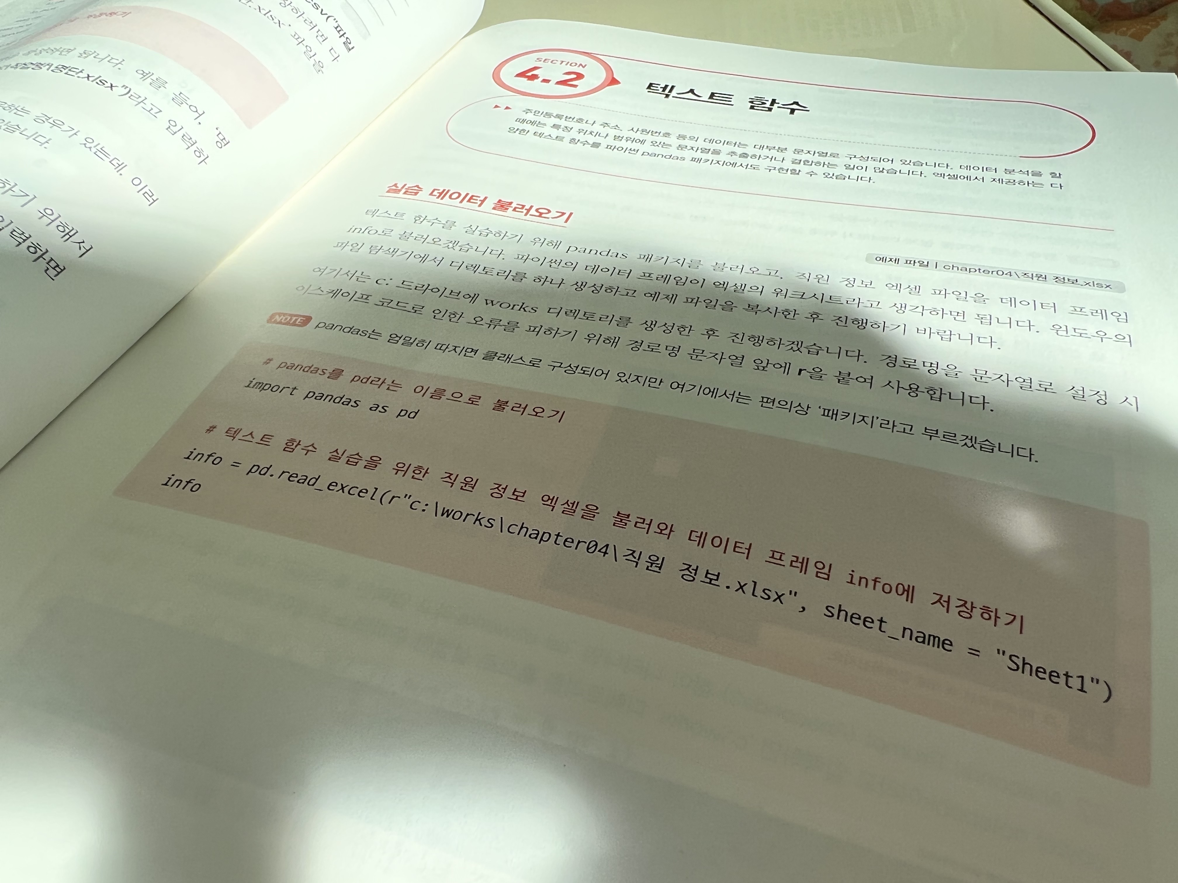 2부에서 「파이썬으로 엑셀 기본 함수 구현하고, 그래프 함수로 시각화하기」입니다. 파이썬 함수로 엑셀 데이터를 불러와서 값을 변경하고, 추출, 시각화를 하는 방법을 상세하게 다루고 있습니다.