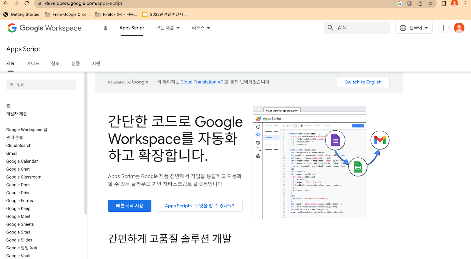 구글 앱스 스크립트를 원활히 사용하기 위해서