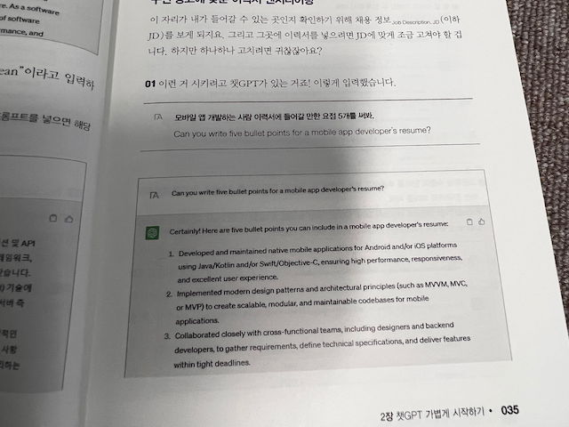 이력서 작성을 위한 예시, 취업을 위한 면접 준비 방법, 취업후에 해야 할일을 챗GPT에 물어볼수도 있습니다.