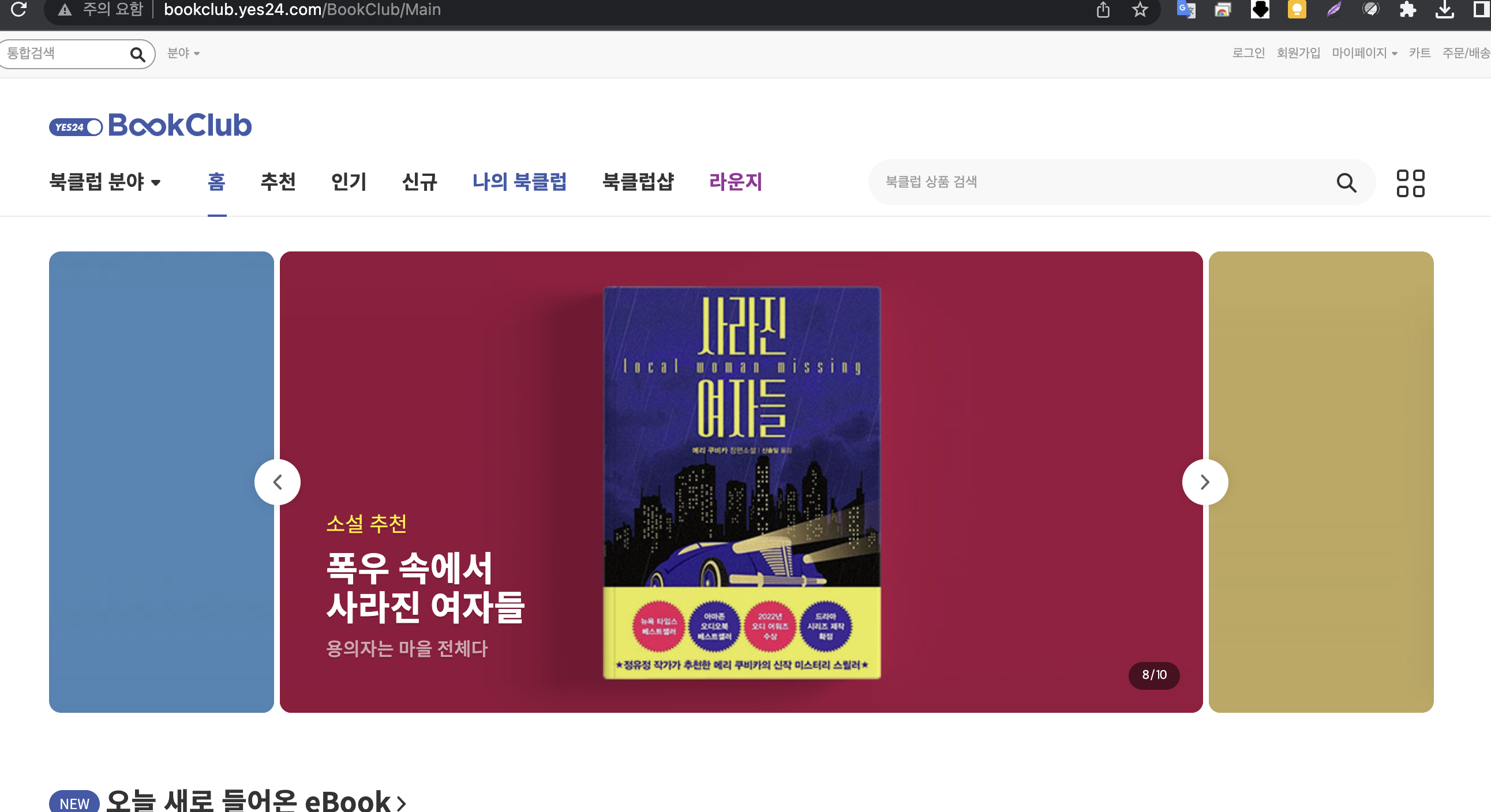 가장 먼저 YES24(예스24)의 북클럽을 이용해보고 후기를 공유하도록 하겠습니다.